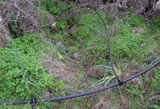 L'impianto è sottotraccia al di fuori della recinzione per evitare calpestii e danneggiamenti, mentre è i superficie nell'area per consentire più facilmente le operazioni di manutenzione; dal condotto principale si irradiano gli stacchi che con successive ramificazioni raggiungono con proprio gocciolatoio ciascuno dei 263 esemplari.